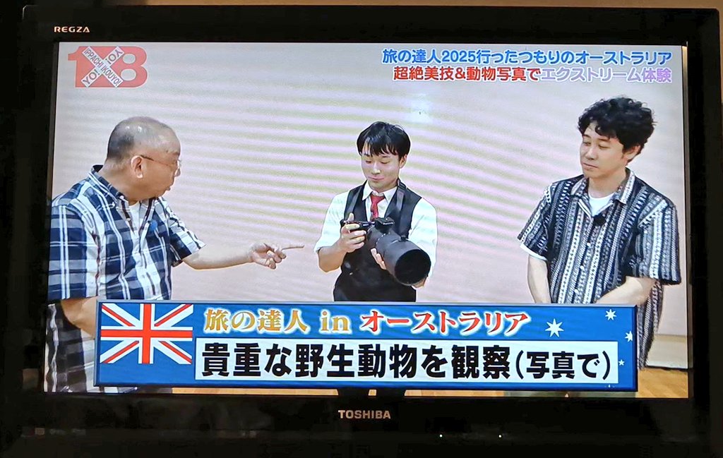 2025.10.19 STV 1×8 いこうよ!出演 BLOG 2025.10.22 【STV 1×8 いこうよ!】 行ったつもりでオーストラリア!という面白い企画に出演させて頂きました! 大泉洋さん & 木村洋二さんに、オーストラリアの大道芸 & 野生動物をエクストリーム体験してもらいました。自分の撮影した野生動物写真が放送されたのがとても嬉しい!TVer見逃し配信もあるので、北海道外の方も是非ご覧ください。